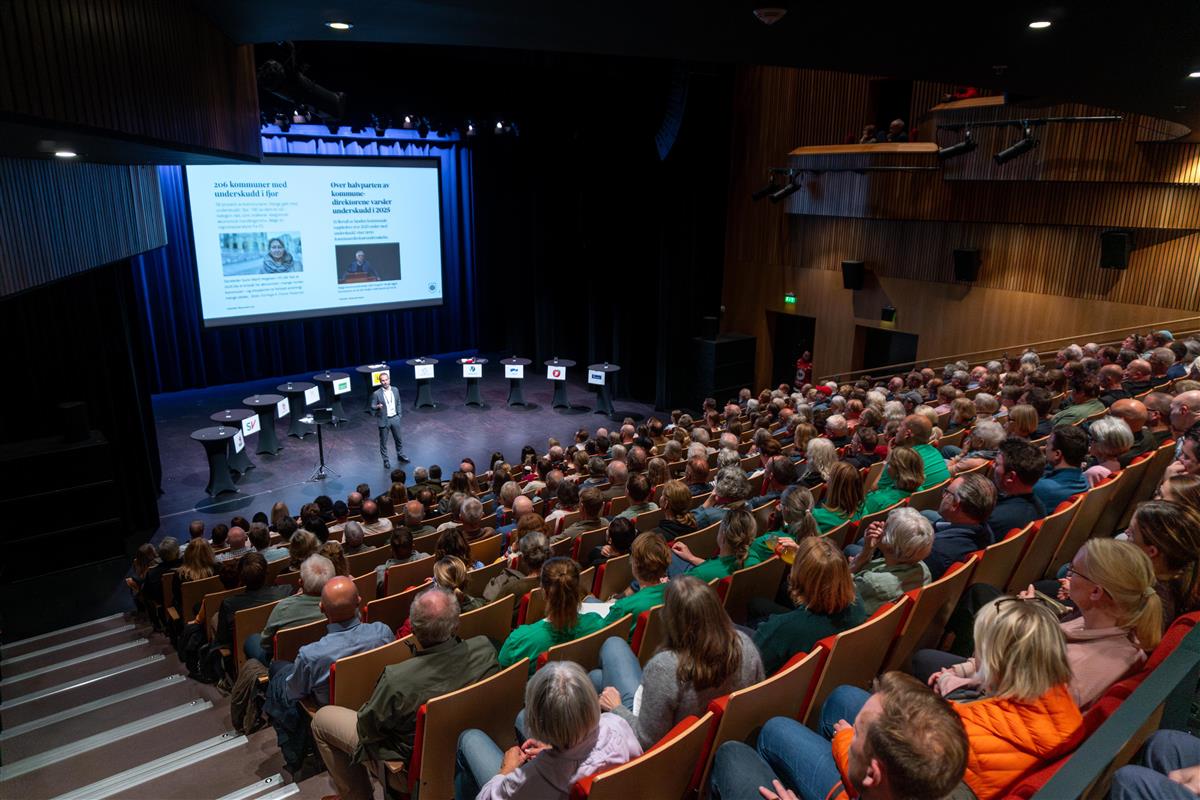 Mange av Lørenskogs innbyggere tok turen til Lørenskog hus for å høre kommunedirektør Ragnar Christoffersen fortelle om kommunens økonomiske situasjon.