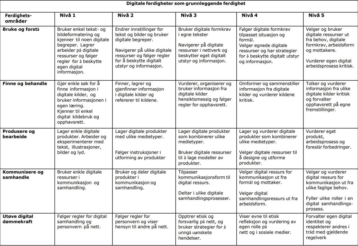 Disse områdene ligger til grunn for arbeidet med digitale ferdigheter på alle trinn.
