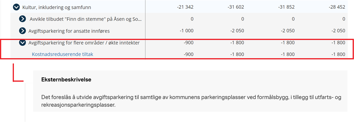 Bla ned til “Kommunestyrets driftsendringer” og så «Kommunestyrets vedtak for kostnadsbesparende tiltak».