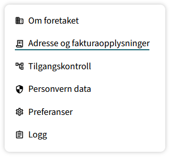 BookUp - leietaker, adresse og fakturaopplysningerFra menyen til venstre velg “Adresse og fakturaopplysninger”.