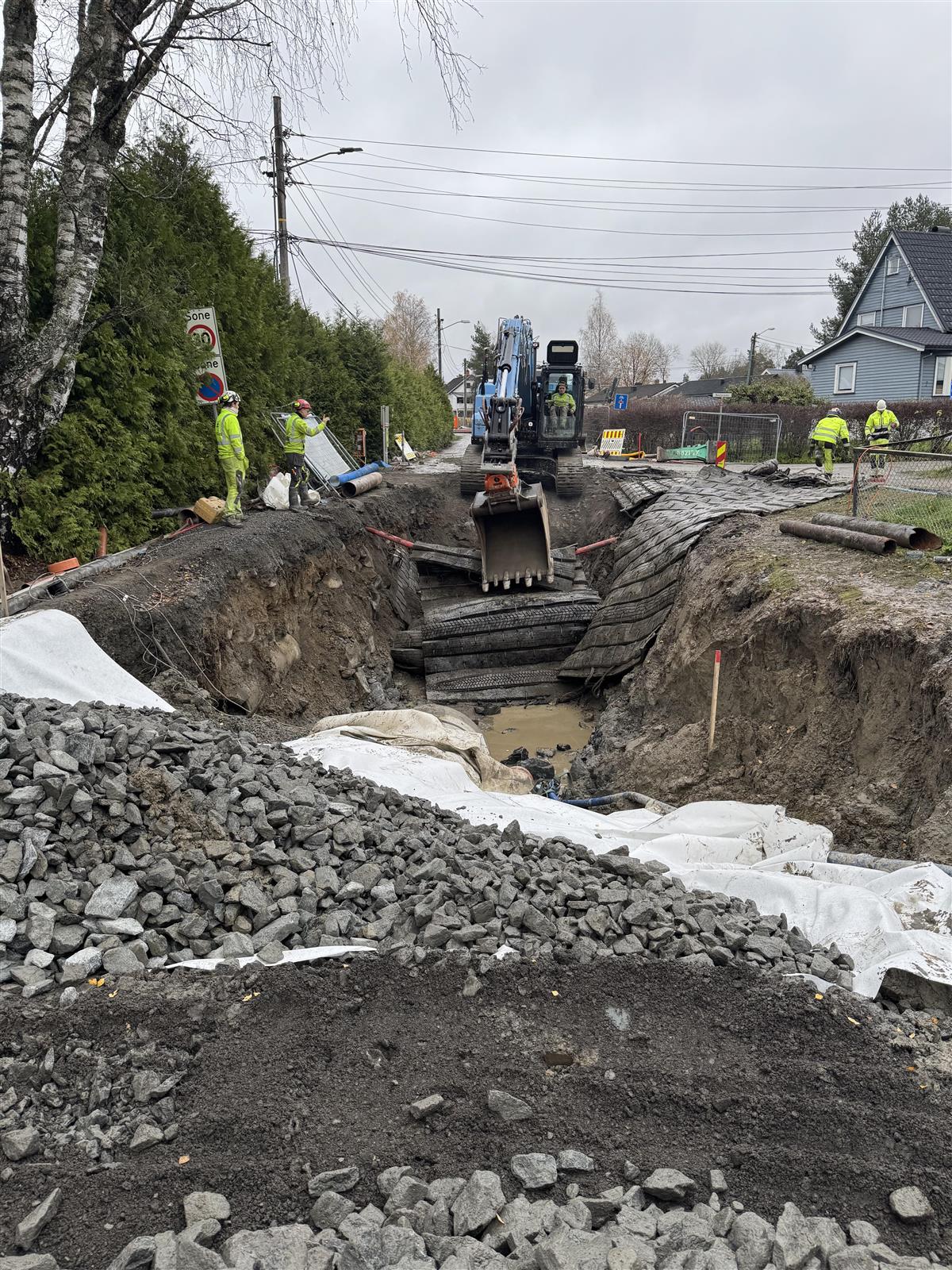 Sprengning av grøft i Njåls vei